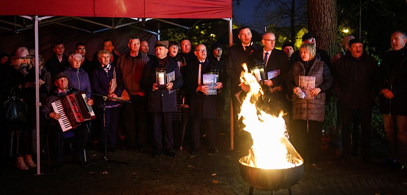 Tradycyjne mieleckie śpiewanki patriotyczne odbyły się przed Pałacykiem Oborskich przy Ogniu Niepodległości przywiezionym przez wolontariuszy prosto z ukraińskiej Kostiuchnówki, gdzie w 1916 roku walczyły o odzyskanie niepodległości trzy Brygady Legionowe.