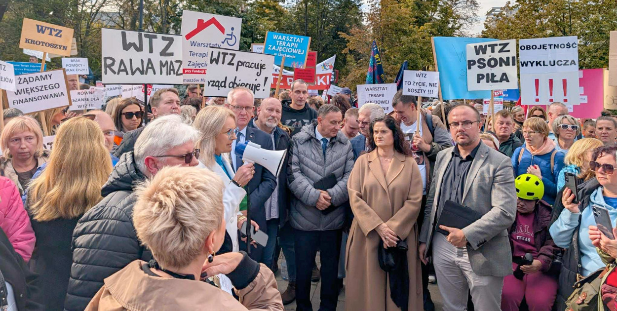 W środę, 8 października, przed Sejmem RP odbył się ogólnopolski protest przedstawicieli warsztatów terapii zajęciowej – terapeutów, uczestników i ich rodzin. Środowisko to domaga się zwiększenia finansowania, lepszych warunków pracy oraz szerszego systemowego wsparcia dla osób z niepełnosprawnościami.