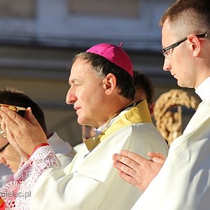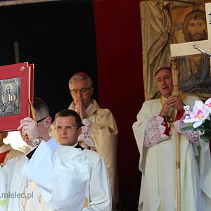 Uroczystą mszę świętą sprawował biskup tarnowski Andrzej Jeż, który wystąpił w ornacie przywiezionym z tegorocznych Światowych Dni Młodzieży w Rio de Janeiro. Biskup w homilii podkreślił, że współczesny świat niesie ze sobą wiele zagrożeń, wyzwań dla chrześcijan. Nawiązał do drastycznych wydarzeń, które miały miejsce ostatnio w Egipcie, gdzie zniszczono 22 kościoły oraz liczne szkoły prowadzone przez siostry zakonne. - Bądźcie solą ziemi - mówił do pielgrzymów i nawoływał o autentyczne świadectwo wiary. Życzył pątnikom, by wspólnota jaką tworzą owocowała, przenikała do serc innych, pozwalając im zbliżyć się do Boga.