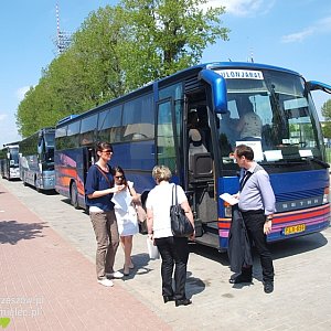 Partnerskie spotkanie w Mielcu trwa tylko 3 dni i ma bardzo napięty program, dlatego czasu na zwiedzanie samego Mielca wiele nie ma. Goście wyruszyli na objazd miasta swoimi autokarami. My wsiedliśmy do setry, którą przyjechali Węgrzy. Autokary pilotowali pracownicy Urzędu Miejskiego.