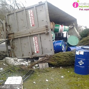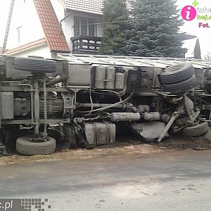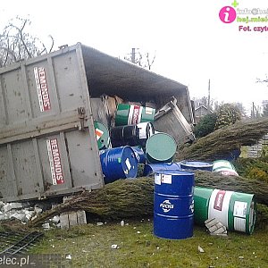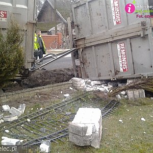 Po chwili ciężarówka wpadła na posesję sąsiadującą z drogą i wywróciła się demolując ogrodzenie i fragment ogrodu. Wcześniej przecięła jeszcze wjazd na tę posesję.