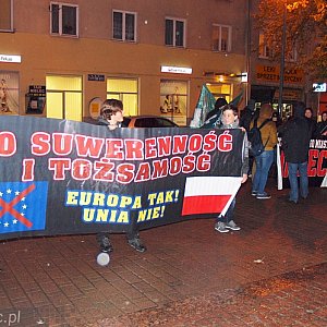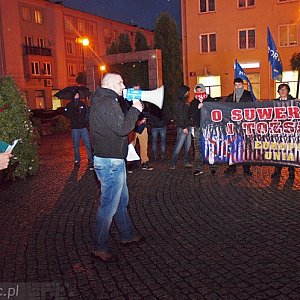 Pikietę zorganizowały środowiska prawicowe, byli przedstawiciele kilku ugrupowań wyposażeni w transparenty i flagi. Liderzy tych ruchów powiedzieli kilka słów, przekonywali, że Polska nie powinna przyjmować imigrantów z Syrii i podobnych państw. Zaznaczali, że wśród uchodźców mogą być zwyczajni imigranci ekonomiczni czy terroryści.