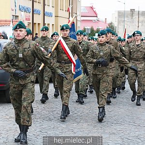 Kolejnym ważnym punktem rocznicowych obchodów był uroczysty przemarsz ulicami starówki przed Pomnik Wolności. Taki mielecki mały Marsz Niepodległości organizowany jest od wielu lat. W rytm muzyki granej przez prowadzącą pochód Mielecką Orkiestrę Dętą, szły m.in. liczne poczty sztandarowe, kombatanci, samorządowcy, parlamentarzyści, przedstawiciele różnych instytucji, związków, służb oraz mieleccy harcerze, którzy kolejny raz ponieśli symboliczną, dużą flagę Polski.