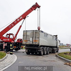 Zjeżdżając z wiaduktu na obwodnicy Mielca, przy osiedlu Rzochów, ciężarówką prawdopodobnie zbyt gwałtownie wjechała w rondo. Kierowcy nie udało się skrzyżowania pokonać, pojazd się wywrócił.