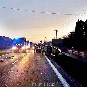 Oba pojazdy wypadły z drogi, droga Mielec - Tarnobrzeg była czasowo zablokowana.