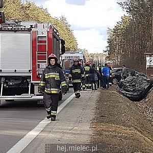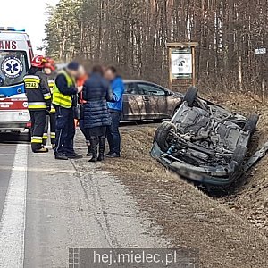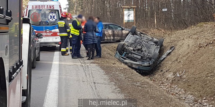 Jadący w kierunku obwodnicy Mielca po ulicy Wolności samochód osobowy volkswagen passat wypadł z drogi i dachowała w rowie. Trzy osoby, które jechały samochodem zostały poszkodowane i odwiezione do szpitala powiatowego w Mielcu.