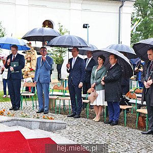 XVIII Dożynki Województwa Podkarpackiego zostały w tym roku połączone z Dożynkami Powiatu Mieleckiego. Na uroczystości przyjechał przedstawiciel prezydenta Andrzeja Dudy - minister Adam Kwiatkowski. Samorząd województwa reprezentował marszałek Władysław Ortyl, wicemarszałek Bogdan Romaniuk oraz wiceprzewodniczący sejmiku Czesław Łączak. Obecni byli parlamentarzyści: Krystyna Skowrońska, Maciej Masłowski, Rafał Weber oraz Jan Warzecha. Nie zabrakło wicewojewody Lucyny Podhalicz, starosty mieleckiego Zbigniewa Tymuły, prezydenta Mielca Fryderyka Kapinosa.