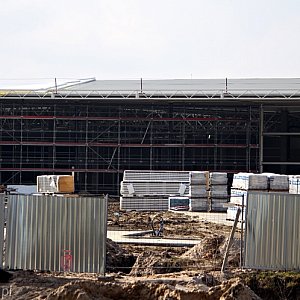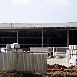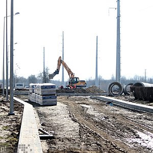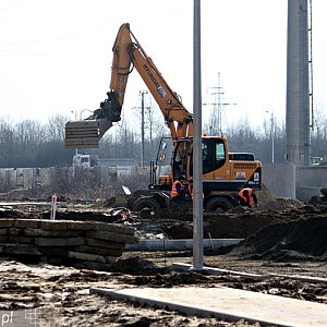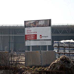 Na placu budowy Galerii Aviator pojawili się budowlańcy, przy obiekcie stanęły kolejne rusztowania. Jednocześnie trwają prace nad ulicą Powstańców Warszawy. Główne prace drogowców skupiają się na budowie ronda, które prowadzić będzie do Aviatora.