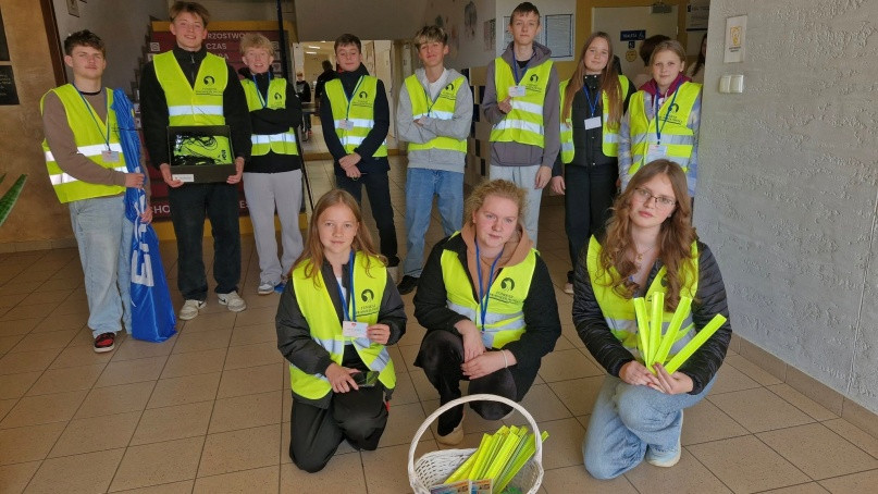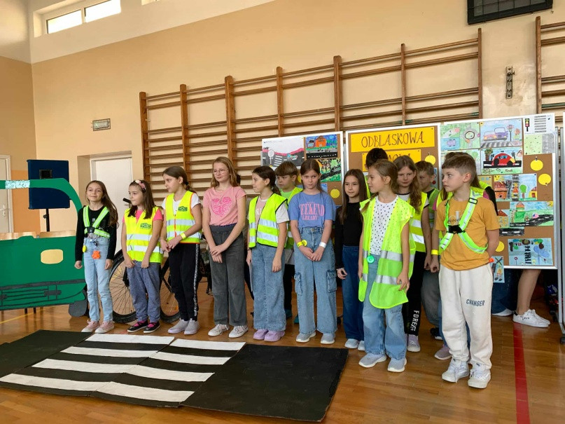 Dodatkowo uczniowie na lekcjach muzyki, razem z nauczycielem Maciejem Kosztyłą, stworzyli piosenkę, która przypomina o odblaskach i bezpieczeństwie – pokazując, że edukacja może być również artystyczna i kreatywna.