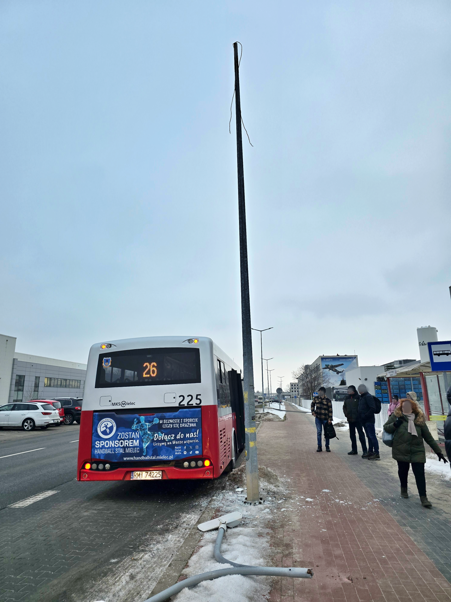 - 30 stycznia, około godziny 15:19 kierowca autobusu linii 26 uderzył w latarnię na przystanku obok formy Kirchhoff. Kazał wysiąść ludziom i odjechał z miejsca zdarzenia. Nie zapytał się czy nic nikomu się nie stało. Jeden z pasażerów stał obok drzwi, w które uderzyła górna część podwójnej lampy oświetleniowej. Do środka autobusu wsypało się szkło. Pasażerowie sami przesiedli się do innych autobusów –