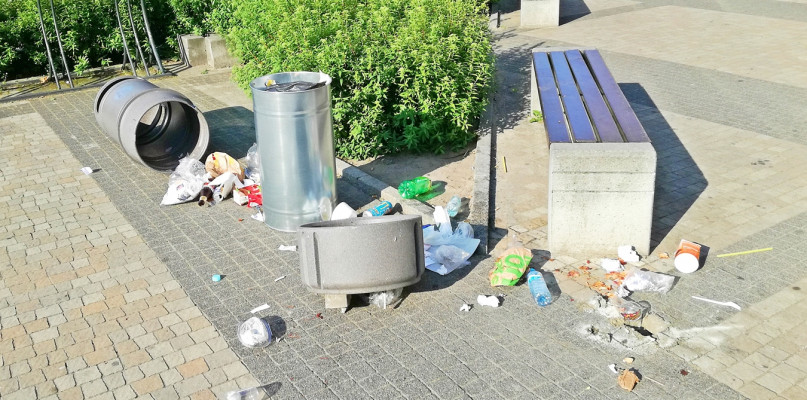 Mielecki magistrat zlecił wymianę koszów na śmieci na Rynku i przy ulicy Mickiewicza. Część z nich nie przetrwała pierwszego weekendu!