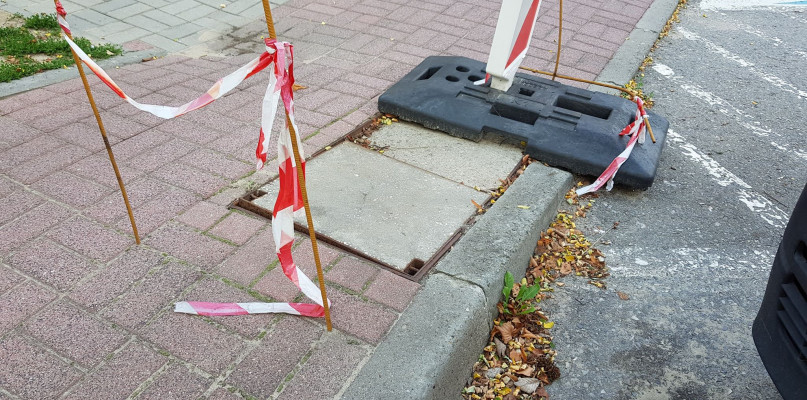 Wiosną w miejsce starego fotela ustawiony został biało-czerwony pachołek, który ostrzega przez niebezpieczną studzienką. I na tym reakcja się zakończyła. Mija już 5 miesięcy od defektu studzienki.
