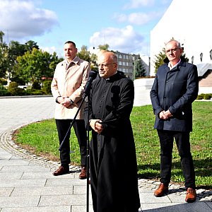 W trakcie konferencji głos zabrał także ks. Waldemar Ciosek, proboszcz parafii pw. Ducha Świętego, który podkreślił potrzebę stworzenia na placu kościelnym tzw. skweru patriotycznego.