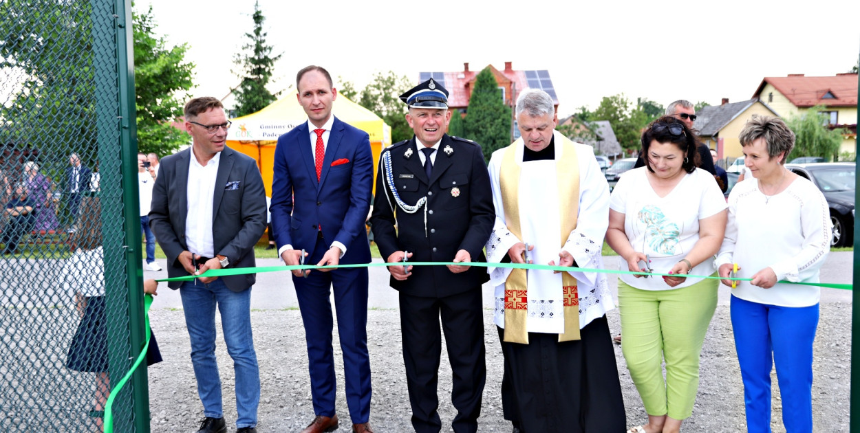 Symbolicznego przecięcia wstęgi dokonali m.in.: wójt gminy Padew Narodowa Robert Pluta, przewodniczący Rady Gminy Janusz Bik, dyrektor biura posła Fryderyka Kapinosa, sołtys Marzena Barszcz, radna Małgorzata Malinowska oraz proboszcz parafii.