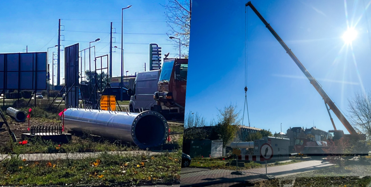 O planach budowy trzech nowych nadajników informowaliśmy niedawno na łamach hej.mielec.pl. W ostatnich dniach na niewielkiej działce przy Rondzie im. kpt. Jerzego Dębickiego - u zbiegu ulic Wolności i Szafera - trwały prace przygotowawcze pod instalację masztu. Dzisiaj na miejscu pojawił się dźwig przy pomocy którego stawiany jest duży maszt.