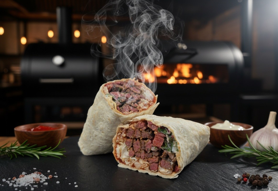 Frytolawasz BBQ – połączenie pastrami, frytek i świeżych warzyw zawinięte w lawasz.