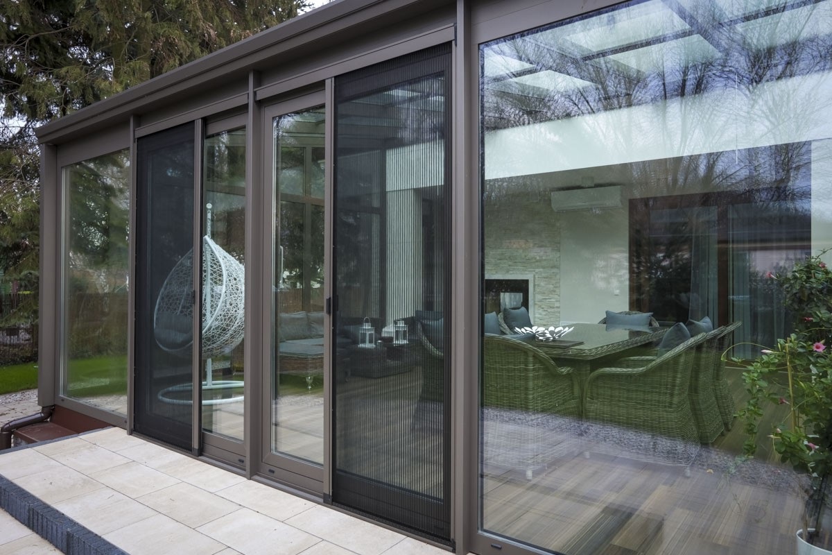 Przy dużych przeszkleniach oraz przesuwnych skrzydłach drzwiowych najlepiej sprawdzą się moskitiery przesuwne, w których skrzydło porusza się po górnej i dolnej prowadnicy. To rozwiązanie idealne tam, gdzie mamy wystarczająco dużo miejsca na ich swobodną obsługę.
