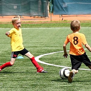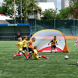 Dopisali uczestnicy, dopisała pogoda. Wszystkie zgłoszone drużyny wraz ze swoimi kibicami wstawiły się na miejscu rozgrywek. Pierwszy sędziowski gwizdek i zaczęło się. W sumie 77 bardzo młodych zawodników i zawodniczek poprzez dobrą zabawę rywalizowało równocześnie na dwóch boiskach. Ponad drugie tyle kolegów i koleżanek dopingowało z trybun swoje zespoły robiąc to znakomicie.
