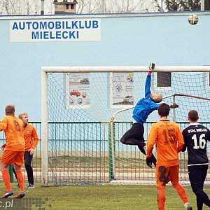 Zespół z Kraśnika zagrał bardzo ambitnie, robił wszystko by nie stracić bramki, ustawił się defensywnie i liczył na kontry. Jednak nie zagroził bramce mielczan, Biało-Niebiescy natomiast do przerwy mogli trafić dwa razy - zabrakło precyzji. Gospodarze grali nieco wolniej niż dotychczas, ale niemal non stop byli przy piłce.