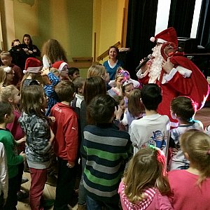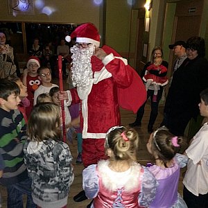 Po licznych i bardzo różnych pytaniach przyszedł czas na tańce z gościem, a po nich na paczuszki jakie przywiózł dla nich Mikołaj. Dzieci nie mogły się doczekać tego momentu. Każde dziękowało i zapewniało Mikołaja, że przez cały rok było bardzo grzeczne. Każde przybyłe na zabawę dziecko otrzymało prezent w postaci łakoci. Po obdarowaniu prezentami, te bardziej śmiałe maluchy miały okazję zrobić sobie pamiątkowe zdjęcie z Mikołajem, a te jeszcze bardziej odważniejsze zaśpiewać piosenkę czy powiedzieć wierszyk.