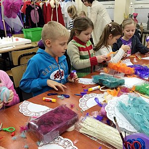 W pracy przez cały czas pomagały plastyczki pracujące w Domu Kultury - Teresa Kubik oraz Urszula Gładyszewska-Wałek. Dzieci miały do wykorzystania wiele materiałów. Ta mnogość i różnorodność sprawiły że powstałe prace były bardzo ładne. Materiały plastyczne, ale przede wszystkim florystyczne, nadały aniołkom indywidualnego, niepowtarzalnego charakteru. Dzieci chętnie przyklejały piórka, cekiny, koraliki. Robiły aniołkom sukieneczki z brokatowych tiulów czy cekinowych wstążek. Podczas pracy było wiele radości i zabawy.Po trzydniowych warsztatach przyszedł czas na dwie zabawy mikołajkowe. Zabawy odbyły się w Spółdzielczym Domu Kultury i Filii na Osiedlu Szafera, czyli w miejscach gdzie miały miejsce warsztaty. Na zabawach gościem specjalnym i bardzo wyczekiwanym był Święty Mikołaj. Przygotował on niespodziankę dla każdego uczestnika zabawy - paczki z łakociami.