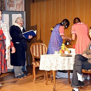 Witając zebranych gości dyrektor Ośrodka Kultury  Dorota Kieraś-Jędrychowska  powiedziała, że sztuka ta została wystawiona w kwietniu 1981r.  w Gminny Ośrodku Kultury w Wojsławiu, którego kontynuacją jest Ośrodek Kultury w Chorzelowie, wspominała  także, że została przygotowana m.in. w związku z Rokiem Teatru Polskiego.