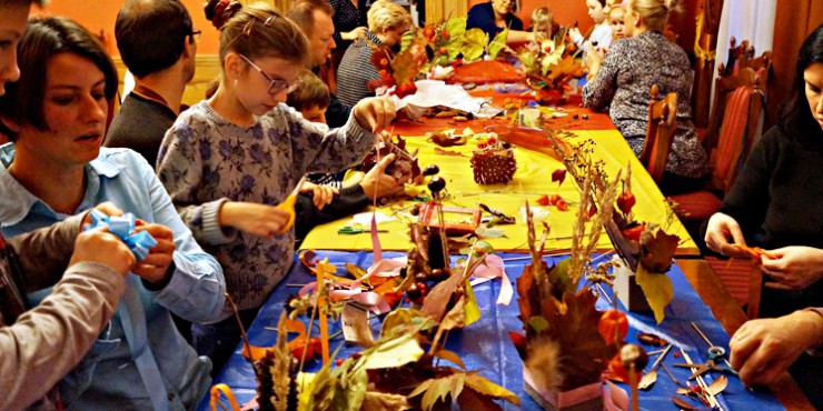 Ponad 30 uczestników stworzyło pod okiem Iwony Groele wspaniałe jesienne stroiki, które zabrało po zakończonych zajęciach do swoich domów. Dekoracje zostały wykonane z różnorodnych darów jesieni takich jak: żołędzie, kasztany, jarzębina, kalina, wielokolorowe liście drzew i krzewów wzbogaconych o wstążki i inne barwne akcenty.