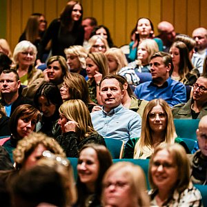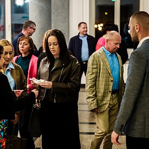 A potem publiczność mogła już wejść w świat stworzony przez dwóch znakomitych aktorów – Piotra Polka i Piotra Szwedesa. Komediowy spektakl „Pół na pół” dzięki błyskotliwym dialogom i wyśmienitemu aktorstwu komediowemu został przyjęty przez mielecką publiczność niezwykle ciepło.