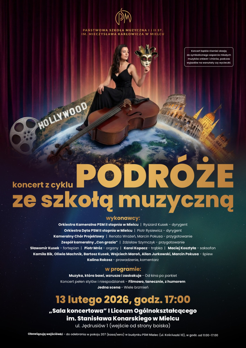 Koncert będzie także okazją do symbolicznego wsparcia młodych muzyków – orkiestr i chórów – w realizacji wyjazdów koncertowych, warsztatów i projektów artystycznych.