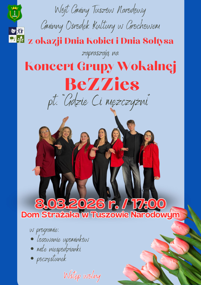 W niedzielę 8 marca w Domu Strażaka w Tuszowie Narodowym zaplanowano koncert Grupy Wokalnej BeZZies pt. „Gdzie Ci mężczyźni”. Wydarzenie dedykowane jest mieszkankom gminy z okazji Dnia Kobiet oraz sołtysom, którzy 11 marca obchodzą Dzień Sołtysa.