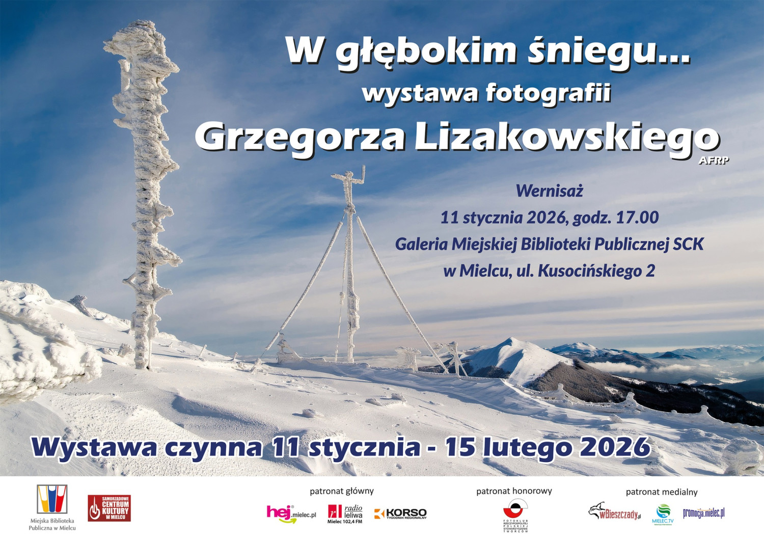 Od niedzieli 11 stycznia w Miejskiej Bibliotece Publicznej będzie można oglądać fotografie autorstwa Grzegorza Lizakowskiego. Wernisaż rozpocznie się o godzinie 17:00.