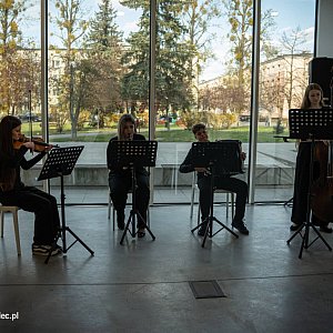 Niepowtarzalny klimat wydarzenia dopełniła muzyka organowa w wykonaniu Piotra Mroza, która wypełniła wnętrze biblioteki i wprowadziła uczestników w kontemplacyjny nastrój. Publiczność mogła doświadczyć wyjątkowego połączenia różnych dziedzin sztuki – obrazu, dźwięku i ruchu.