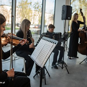 Finał wernisażu przeniósł uczestników do przestrzeni galerii, gdzie – przy muzyce na żywo zespołu kameralnego CON GRAZIA – odbyły się rozmowy z artystą oraz symboliczne wręczenie kwiatów.