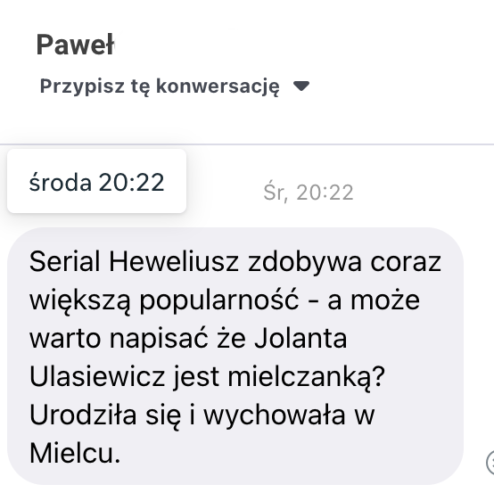 Czytelnik Paweł zwrócił uwagę redakcji hej.mielec.pl na pochodzenie żony kapitana Ułasiewicza – Jolanta jest mielczanką.