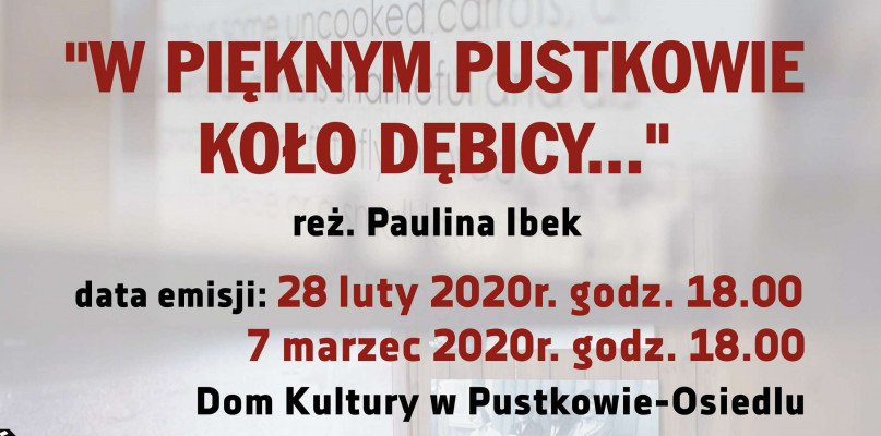 W dniu 28 lutego oraz 7 marca o godz. 18:00 w Domu Kultury w Pustkowie-Osiedlu odbędą się kolejne projekcje filmu pt. "W pięknym Pustkowie koło Dębicy..." w reżyserii Pauliny Ibek. Wstęp bezpłatny.