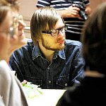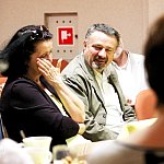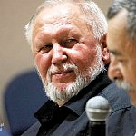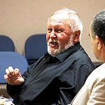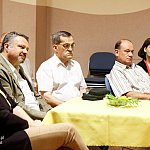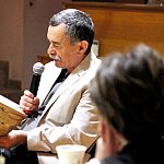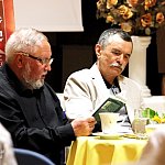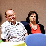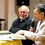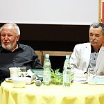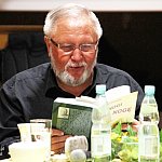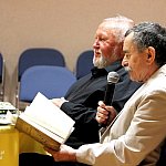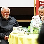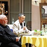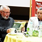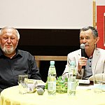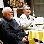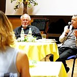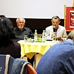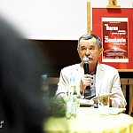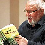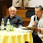 ?Z nogi na nogę? to najmłodszy utwór poety i prozaika rodem z Muszyny, czyli Adama Ziemianina. Z kolei ?Spadając patrzeć w gwiazdy? to kontynuacja ?Koncertów dla nosorożca? i ?Przystanku marzenie? Józefa Barana. Poeci zaprezentowali swoje książki w Mielcu 16 maja 2013 r. Fot. ks