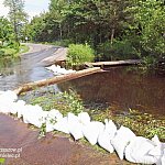 W samej Trześni wylał potok płynący przez środek wsi, nie pierwszy raz w ostatnich latach. Podtopione zostały gospodarstwa zlokalizowane w sąsiedztwie potoku, zalana była też częściowo gminna droga.