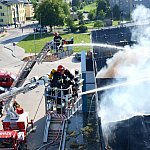 Pożar rozpoczął się w środę 19 czerwca 2013 r. około godz. 14. Zapalił się dachu budynku krytej pływalni przy ul. Jana Pawła II w Kolbuszowej. Jak wstępnie ustalili policjanci były tam prowadzone prace remontowe związane z naprawą dachu. Ewakuowanych zostało w sumie 25 osób. Nikomu nic się nie stało. Akcja gaśnicza trwała ponad 17 godzin. Fot. KW PSP Rzeszów, ks