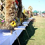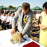 W tym roku dożynki gminy wiejskiej Mielec odbyły się na obiekcie stadionu sportowego w Podleszanach. Mieszkańcy wspólnie z przedstawicielami samorządu świętowali tegoroczne plony, choc - jak podkreślali - nie były one udane. W Podleszanach nie zabrakło prezentacji wieńców dożynkowych i tradycyjnego przekazania chleba wójtowi. Fot. ks