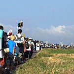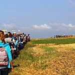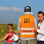 Niezmożeni, zadowoleni i napełnieni wiarą pielgrzymi wędrują dalej przed siebie w stronę Częstochowy. Szlak staje się coraz krótszy, czasu też ubywa. Wkrótce dotrą do celu - upragnionej Częstochowy. Fot. OL, ML