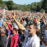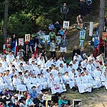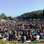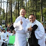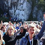 Pielgrzymkowe grupy A i B połączyły się w jedną wspólnotę podczas uroczystej mszy w Trzebniowie. Od dziś razem maszerują, pokonując ostatnie kilometry, które dzielą pielgrzymów od Częstochowy. Fot. OL, ML
