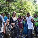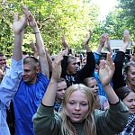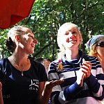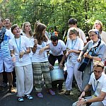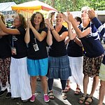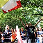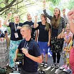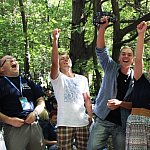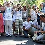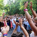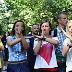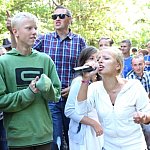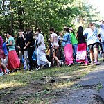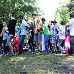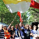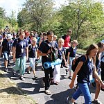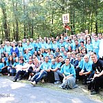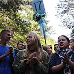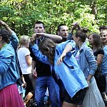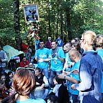 Wszystkie grupy z części A i B przed wejściem do Częstochowy zatrzymują się w lasku na ul. Hektarowej, gdzie nie kryją swojej radości z przebytej drogi oraz bliskości wyznaczonego celu. Wesoło tańczą i śpiewają. Fot. OL, ML