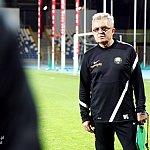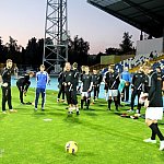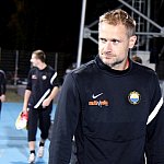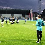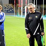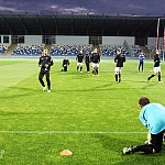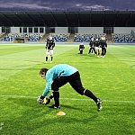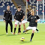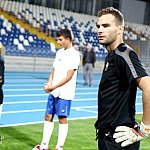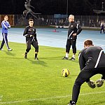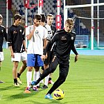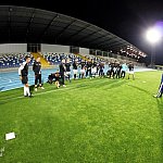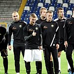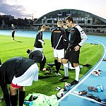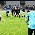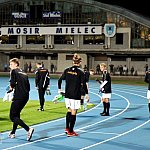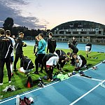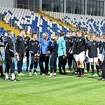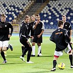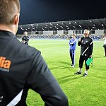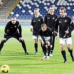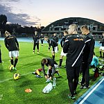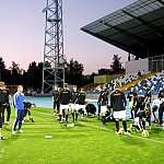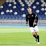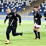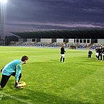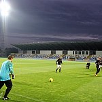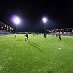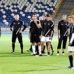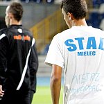 Piłkarze drugoligowej Stali Mielec we wtorek 27 sierpnia 2013 r. po raz drugi wyszli na murawę stadionu po jego kompleksowej przebudowie, ale pierwszy raz przy sztucznym oświetleniu. Przez około 30 minut trener Włodzimierz Gąsior prowadził lekki trening z zawodnikami. Piłkarze przygotowują się już do sobotniego meczu z Wigrami Suwałki 30 sierpnia. To będzie pierwszy mecz na odnowionym stadionie. Fot. ks