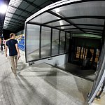 Piłkarze drugoligowej Stali Mielec we wtorek 27 sierpnia 2013 r. wyszli na murawę stadionu po jego kompleksowej przebudowie. Przez około 30 minut trener Włodzimierz Gąsior prowadził lekki trening z zawodnikami - po raz pierwszy przy włączonych jupiterach. Korzystając z okazji, udało nam się wykonać kilka fotografii samego obiektu. Fot. ks, pc