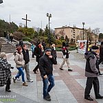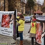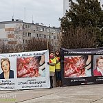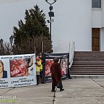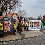 Przed największymi kościołami w Mielcu stanęli członkowie Fundacji Pro - Prawo do Życia, rozłożyli transparenty z kontrowersyjnymi zdjęciami zestawionymi z fotografiami posłanki Krystyny Skowrońskiej. Fot. Fundacja Pro - Prawo do Życia.
