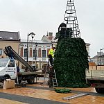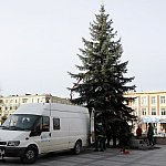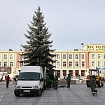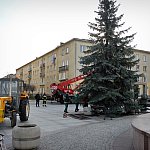 Słoneczny 3 grudnia 2013 r. - na Plac Armii Krajowej w centrum Mielca przyjechała tradycyjna choinka. Akcja stawiania kilkumetrowego "drzewka" trwała około dwóch godzin. Żywa choinka tradycyjnie już będzie główną ozdobą świąteczną w mieście. Od kilku dni sztuczna choinka ozdabia również mielecki Rynek. Fot. ks