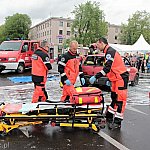 V Mielecki Festiwal Nauki i Techniki ?Promocja kształcenia technicznego? w piątek 30 maja 2014 r. To wydarzenie, które w ciekawy i bardzo atrakcyjny sposób promuje edukację techniczną. V Festiwal przygotowany został przede wszystkim na Placu AK. Tutaj znalazło się kilkudziesięciu wystawców. Na zdjęciach jedna z atrakcji towarzyszących - pokaz ratownictwa przygotowany przez mieleckie pogotowie i straż pożarną. Fot. ks