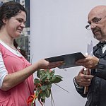 Powołana przez fundację Arkona Kapituła Nagrody ?Złota róża?, pod przewodnictwem wybitnego poety, krytyka i redaktora, Aleksandra Nawrockiego, postanowiła w tym roku uhonorować Monikę Cichoń, pochodzącą z miejscowości Podborze, członkinię Grupy Literackiej ?Słowo? przy TMZM im. Wł. Szafera w Mielcu. Uroczystość odbyła się w bibliotece dziecięco-młodzieżowej przy ulicy Barwnej 8, na warszawskim Ursynowie, 12 września 2014 r. Fot. Roman Trojnacki