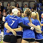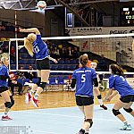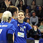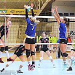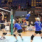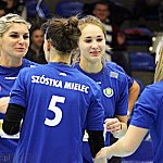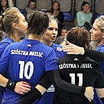 Waleczna postawa siatkarek przyniosła efekt w postaci niespodziewanego, zdecydowanego zwycięstwa 3:0 w pojedynku drugiej kolejki siatkarskiej II ligi kobiet. Szóstka Mielec podejmowała Pajdę Jarosław ? mocny zespół aspirujący do czołowych lokat w tabeli. Mecz odbył się 4 października 2014 r. Fot. ks