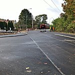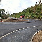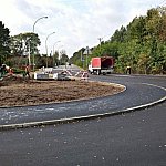Dobiega końca warta 700 tys. zł przebudowa wjazdu na Cmentarz Komunalny wraz z budową łącznika ul. Królowej Jadwigi z obwodnicą miasta. Drogowcy realizują już prace wykończeniowe, a kierowcy jeżdżą wedle nowego układu. Zdjęcia wykonane 20 października 2014 r. Fot. ks